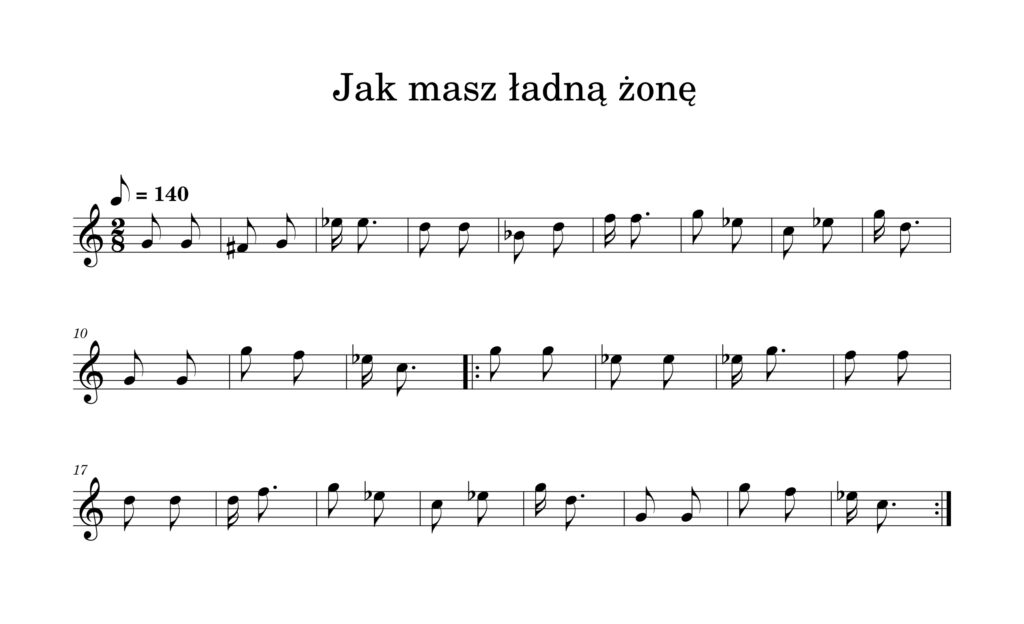 która panna ładna, kocha muzykanta.